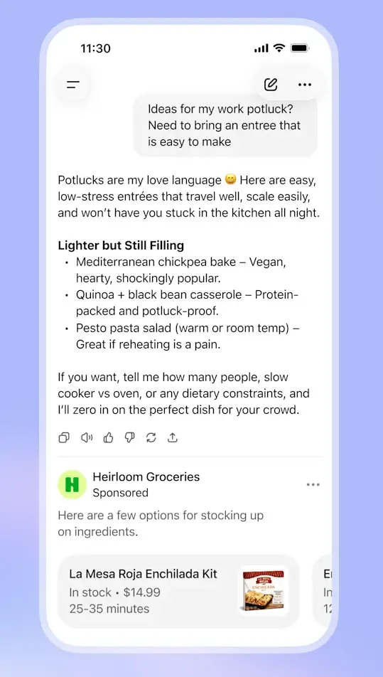 구글 제미나이도 AI Overviews에 쇼핑 광고를 섞는 전략을 쓰지만, 챗GPT의 대화형 UX가 더 강력한 차별점입니다.