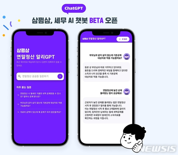 •세금 신고,환급 도움 서비스 ‘삼쩜삼‘ 운영하는 자비스앤빌런즈 챗GPT기반 세금 챗봇 ‘AI점삼이‘ 베타 버전 오픈.