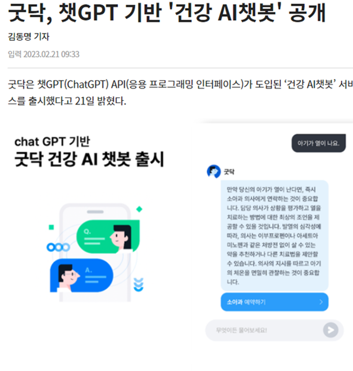 ● 굿닥은 OpenAI의 챗GPT API를 활용해 관련 서비스 출시 .